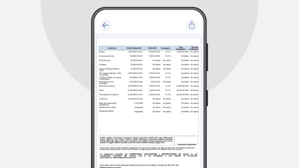 3. Se descargará en formato PDF en tu dispositivo y podrás visualizar a detalle tus coberturas y exclusiones