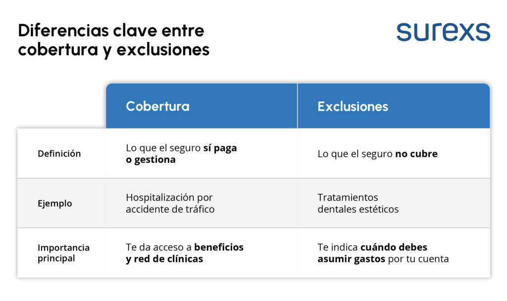 Así como es importante saber todo lo que tu seguro sí cubre, también lo es conocer lo que no está incluido, y eso se llama exclusiones. Las exclusiones son aquellas situaciones, tratamientos o condiciones en las que el seguro no aplica y, por lo tanto, no contarás con un respaldo.